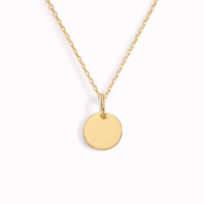 Es una pieza de joyería elegante y moderna, que presenta un diseño minimalista y distintivo. Este collar generalmente está compuesto por un disco de material metálico o con un acabado pulido que se cuelga de una cadena delicada. El disco puede ser de diferentes tamaños y a menudo tiene un acabado brillante o mate, dependiendo del estilo. El nombre «Mari» puede referirse a un detalle único en el diseño, como un nombre grabado, un toque personalizado o una referencia a una colección específica.